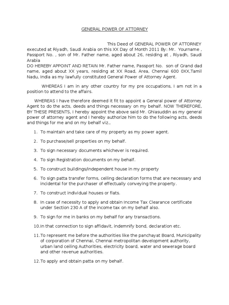 General Power Of Attorney Template Pdf Power Of Attorney Lease